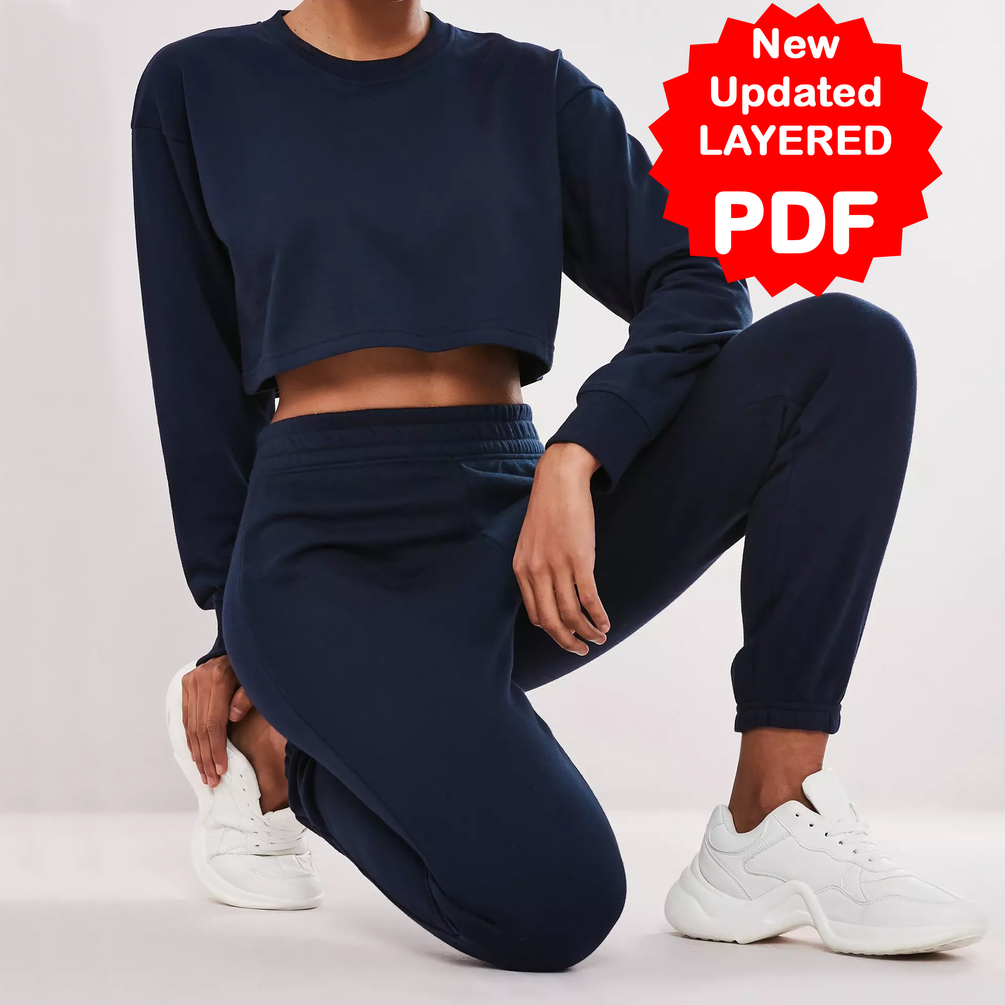 Digital-PDF Sewing Pattern for Cropped Sweatshirt and Jogger